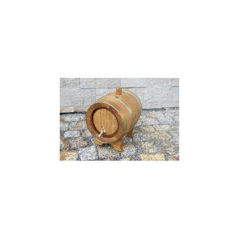 Beczka dębowa posiada podstawę oraz profesjonalny mosiężny kranik.