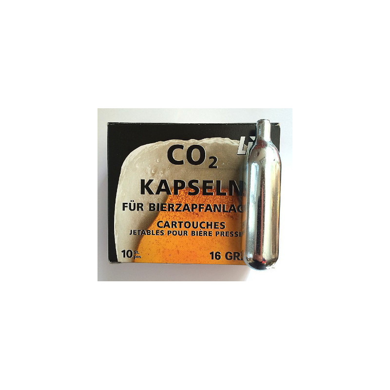 16 gramowy kartridż z dwutlenkiem węgla do kraników. Jeden kartridż wystarcza na ok. 10 l piwa.